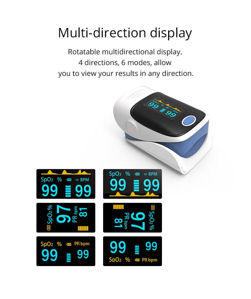 Sõrmeimpulssoksümeeter on taskukohane ja täpne viis pulsisageduse ja vere hapniku küllastumise taseme kontrollimiseks. See näitab ka Pletüsmograafi lainet, mis tagab täpsuse. Isereguleeruv sõrmeklamber pluss lihtne ühe nupuga disain võimaldab hõlpsat kasutamist. Kaasas kandekott ja kaela / randmepael. Mugav õele ja arstile kaela riputamiseks. Väike kaasaskantav suurus teeb selle käsitsemise ja kaasaskandmise lihtsaks. Sobib igapäevaseks kasutamiseks, mõõtke oma tervist igal ajal.
